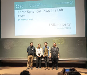 In the final, teams from Berlin, Erlangen, and Munich competed for the title that was won by the team from LMU Munich. Therefore, the team from Munich is directly qualified for the International Physicists‘ Tournament 2027 that will take place in the USA. The team from Erlangen with Sky Blumberg, David Hashemolhosseini, and Elena Meier became second. Furthermore, Sky Blumberg was awarded a prize as the best opponent.